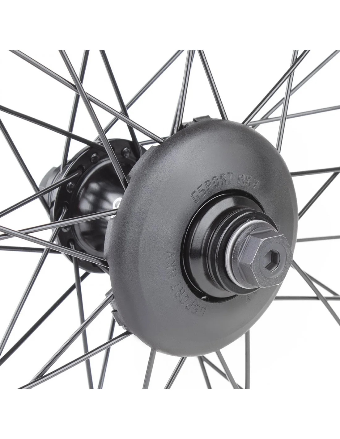 Uniwersalny guard chroniący jednocześnie p[iastę i szprychy. Pasuje do większości piast przednich i niektórych tylnych z niskim kołnierzem.